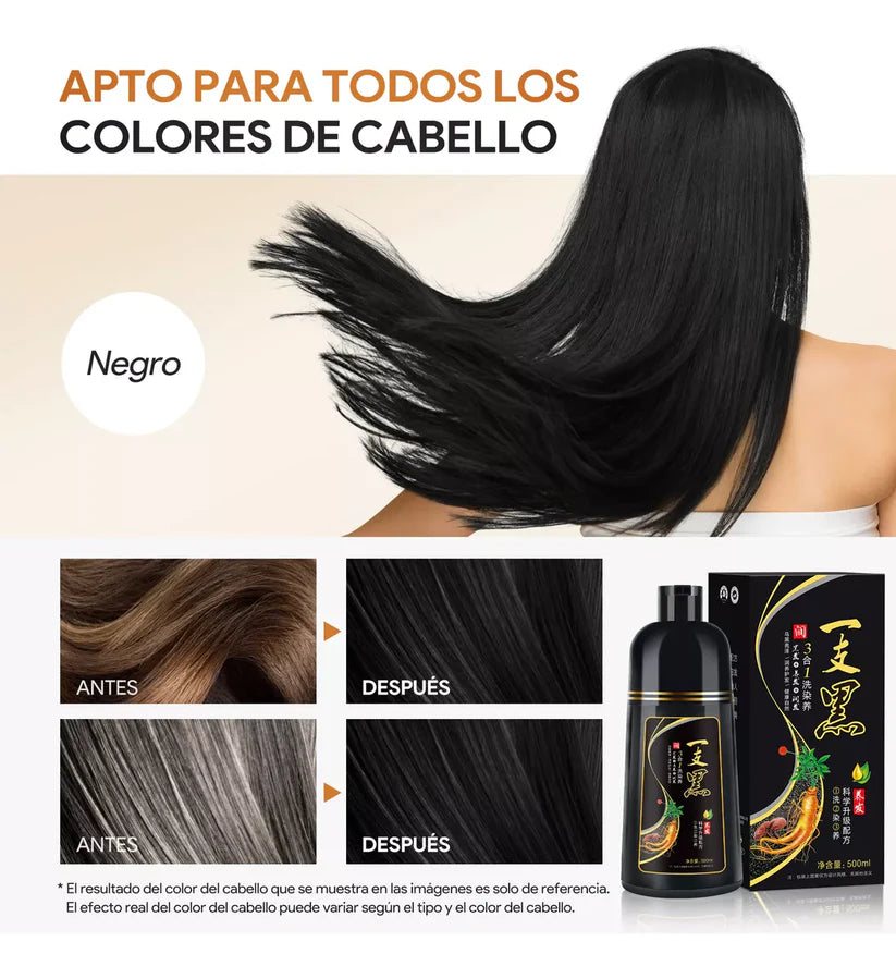 ✔️ Fórmula exclusiva con ingredientes como noni, ginseng y jengibre, que nutren profundamente tu cabello mientras cubren las canas.